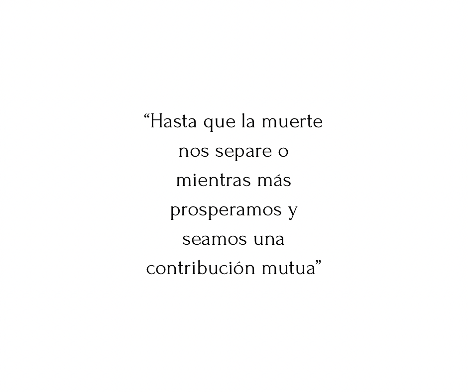 «Hasta que la muerte los separe o mientras más prosperemos y seamos una contribución mutua»